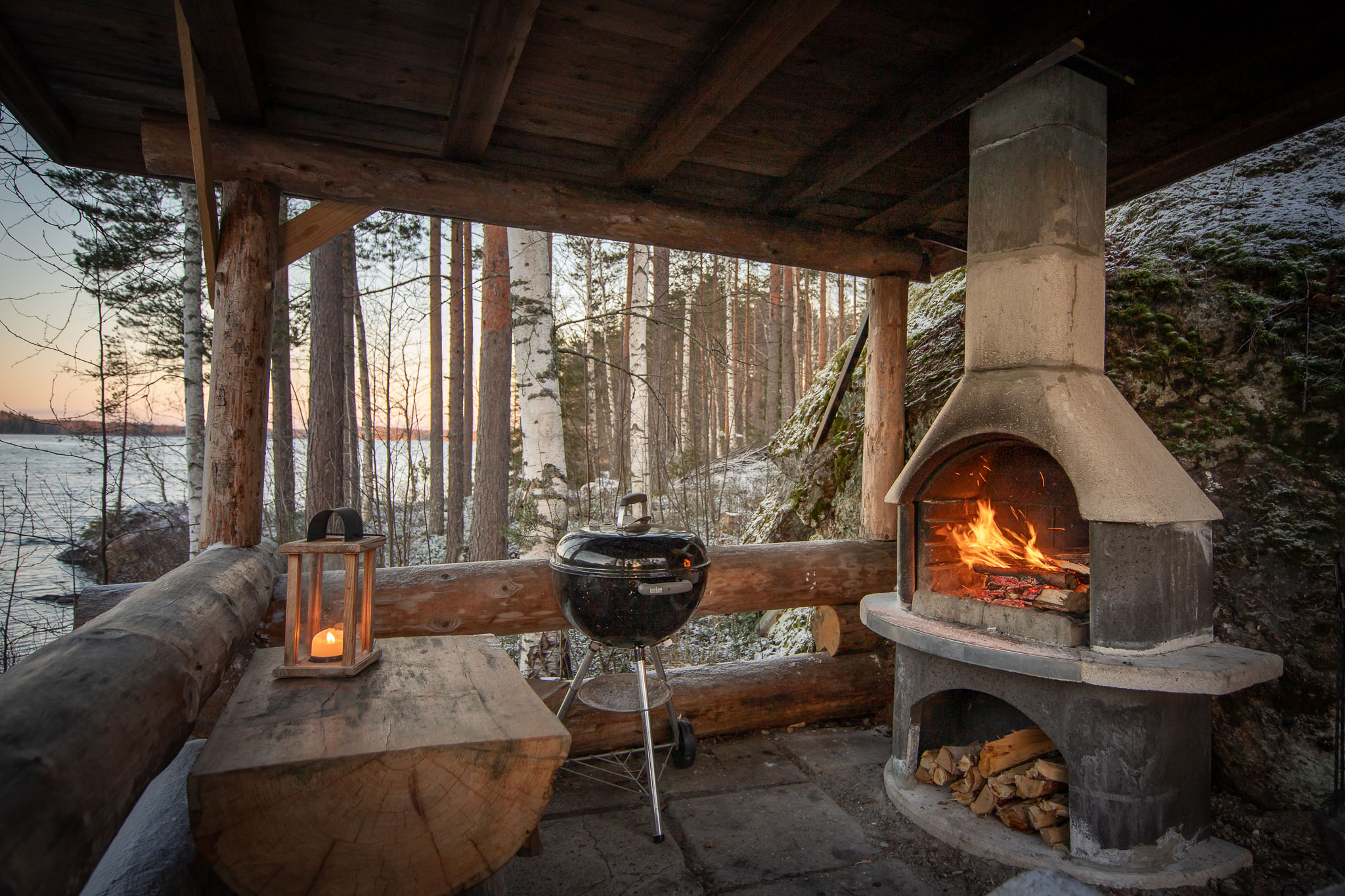 Mökin verannalla kelohirsinen ruokailuryhmä. Grillikatoksessa puugrilli sekä hiiligrilli. Rannassa kiinteärakenteinen laituri, jolla on kesäisin aurinkotuoleja. Matalahko kivikkoinen hiekkaranta. Laiturin päässä vettä 50-100 cm vuodenajasta riippuen. Syvenee sitten nopeasti. Pihalla lisäksi hiekkalaatikko lapsille sekä puuliiteri ja jätteiden lajittelupiste. Parkkitilaa 2-3 autolle. Rantaan matkaa 12 metriä.