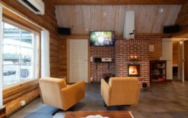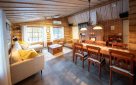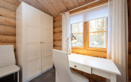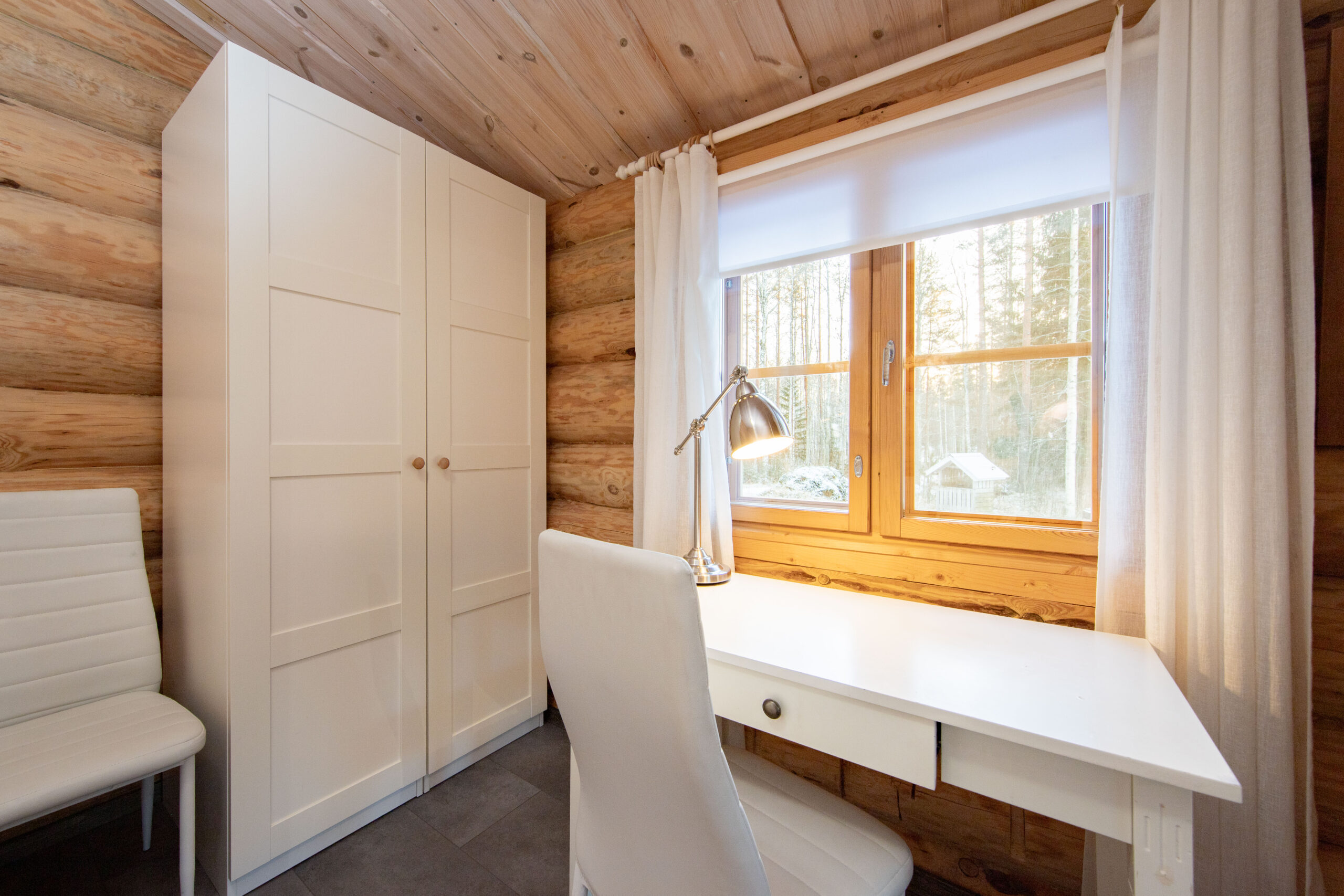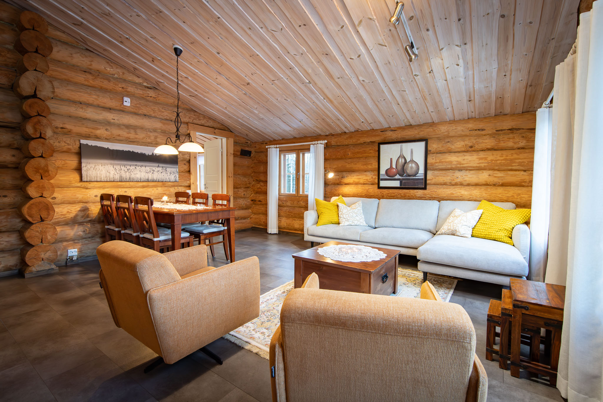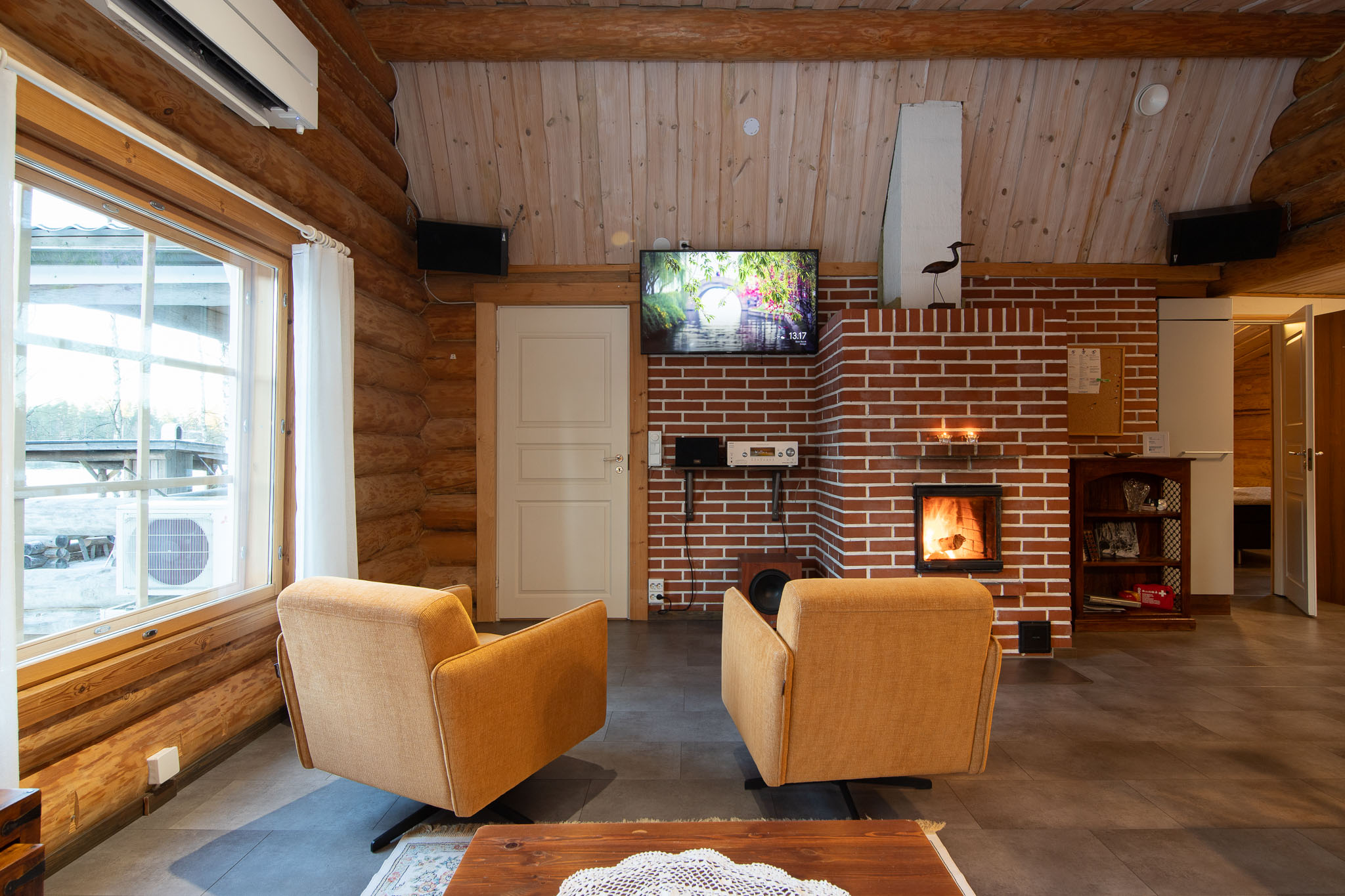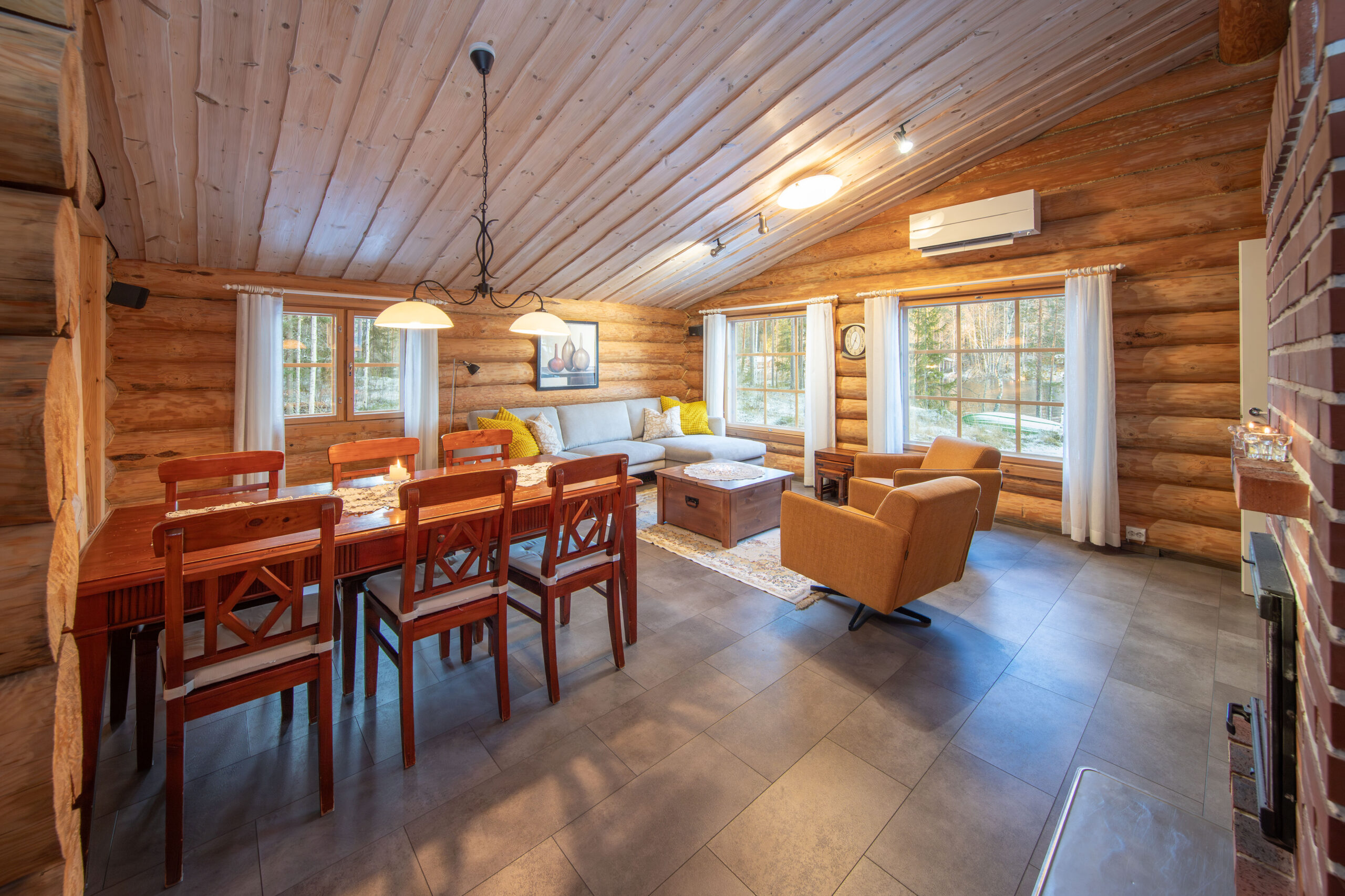 Hyvin varusteltu keittiö. Olohuoneessa divaanisohva ja kaksi pyörivää tuolia sekä varaava takka lasiluukulla ja ruokaryhmä kuudelle. 50-tuumainen Smart-TV, bluray-soitin ja 5.1-kotiteatteri. Yhdessä makuuhuoneessa 210 x 180 cm jenkkisänky. Toisessa makuuhuoneessa 200cm x 90cm runkopatjasängyt.